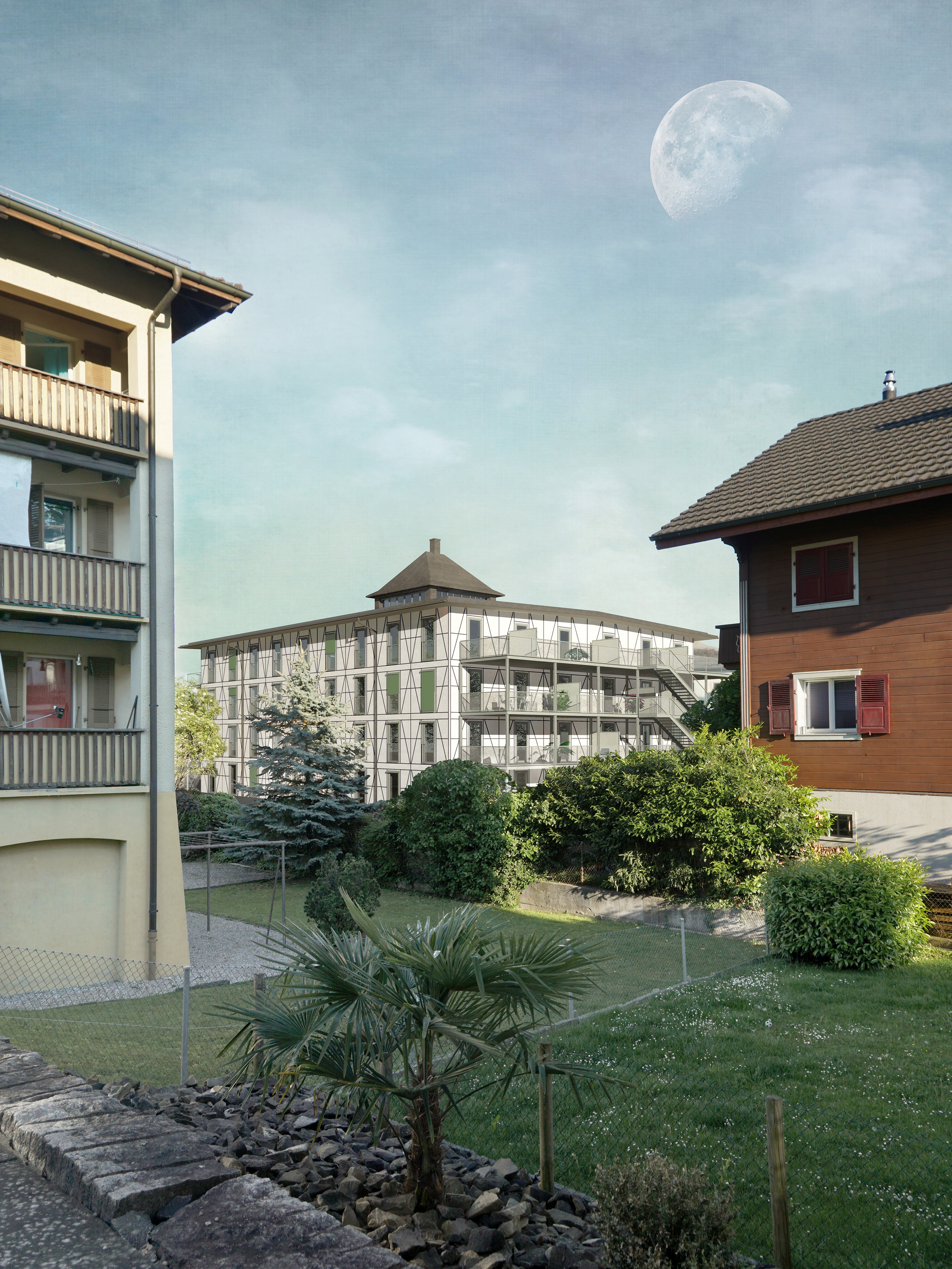 Zwischen Pilatusfuss und Sonnenberg gelegen, kannte Kriens zwischen 1850 und 1970 eine Verstädterung, die wesentlich auf der industriellen Entwicklung beruhte. Aus der Zeit zwischen der Jahrhundertwende und dem Ersten Weltkrieg stammt die Alte Ziegelei. Der Umbau des Fabrikgebäudes zu Wohnungen fiel 1925 in die vom Mangel an günstigem Wohnraum gekennzeichnete Zwischenkriegszeit. Vor dem Hintergrund der denkmalpflegerischen Rahmenbedingungen wird der viergeschossige Hauptbau der Alten Ziegelei erhalten und von seinen verschiedenen Anbauten befreit. Die Umgebung der alten Ziegelei erhält durch die Freispielung des Kernvolumens viel neue freie Fläche und atmet auf. Innerhalb des Gebäudes führt die bestehende, kaskadenartige Erschliessung in den stimmungsvollen Innenhof und über diesen in die einzelnen Wohnungen. Die räumlich mit den Essküchen verbunden Wohnbereiche führen zu den jeweiligen Seitenfasseden im Osten und Westen und verbinden diese mit den grosszügigen vorgestellten Lauben und somit zu den Aussensitzplätzen. Vor dem Hintergrund der Geschichte des Hauses, dem baulichen Zustand der einzelnen Elemente, den bauphysikalischen Anforderungen und den Zielen die Wohnqualität betreffend wird die Fassade der Alten Ziegelei neu entworfen. Ohne historisierend zu verfahren versucht der Entwurf den in vieler Hinsicht zeugenhaften Bau zu stärken. Eine Strategie die das Wesen des Hauses bewahrt und seine Identifikationskraft zugunsten des Quartiers und der Bewohner fördert.