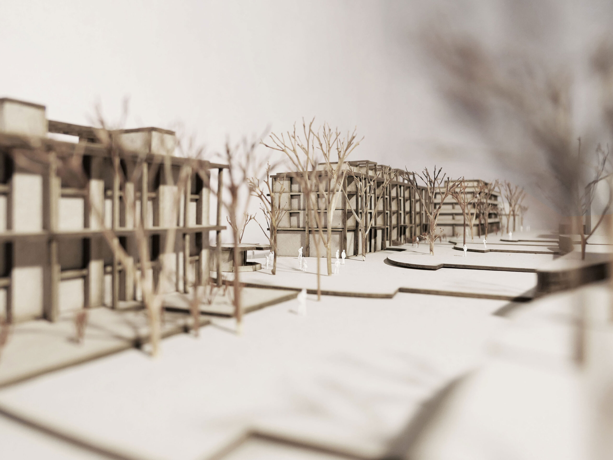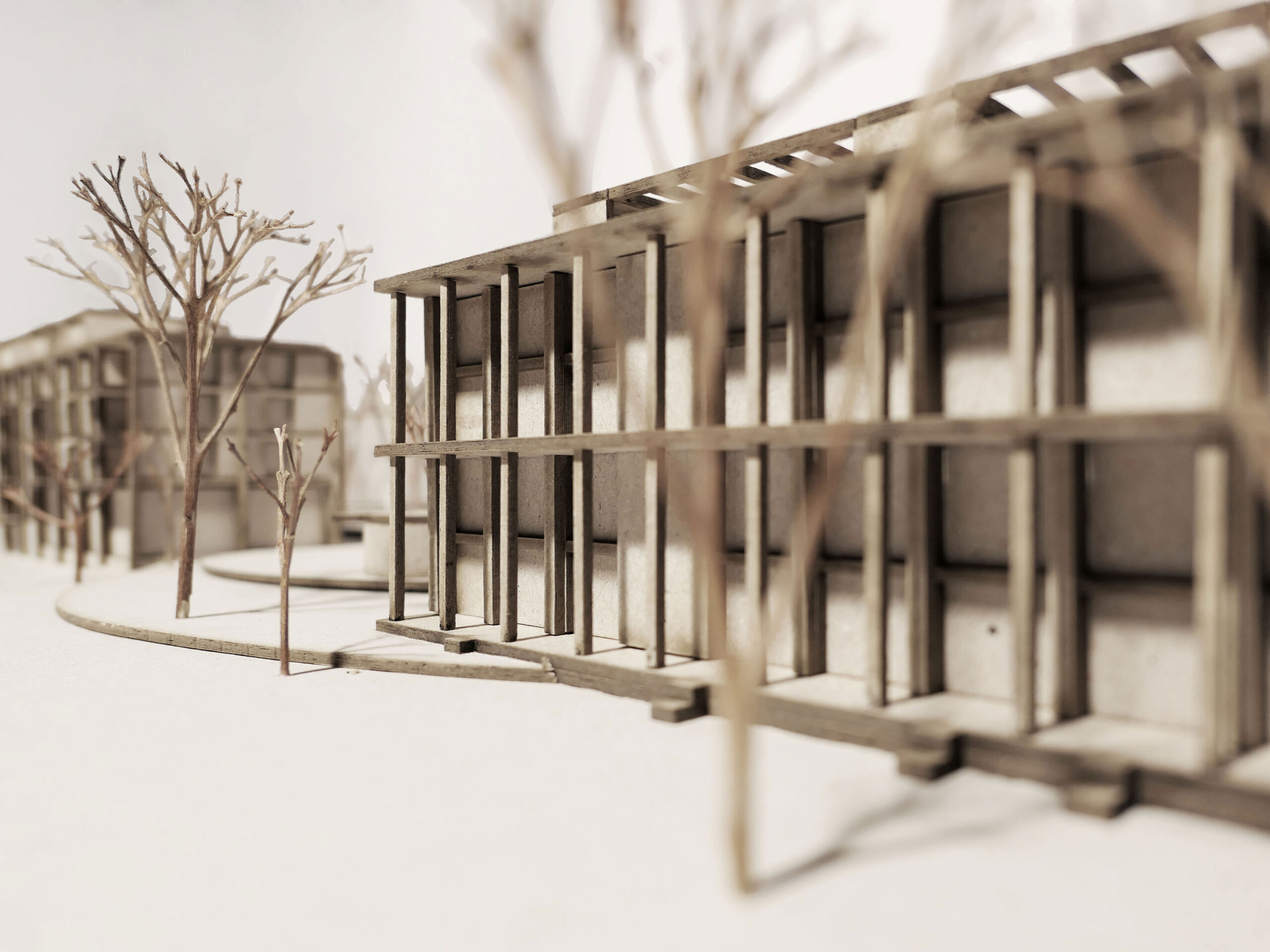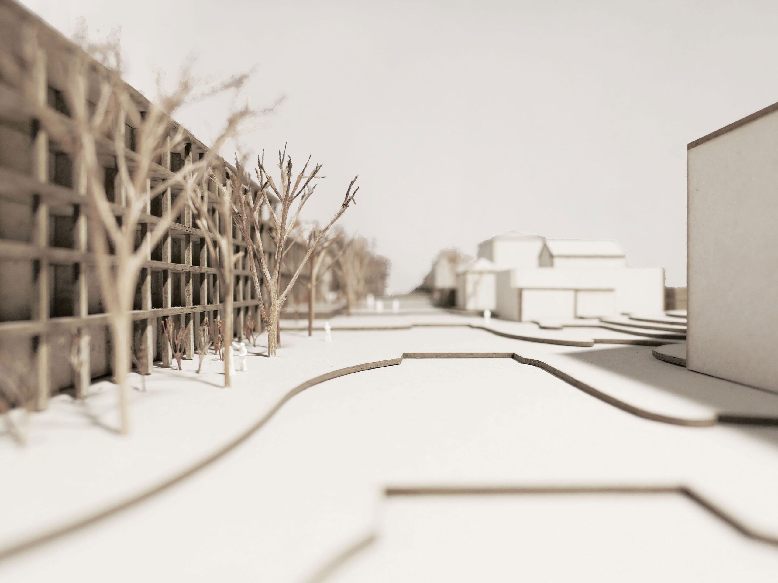 Der Siedlungsraum von Meggen breitet sich fast über den ganzen seeseitigen Seitenhang des Hügelzuges aus, der von Südwesten nach Nordosten verlaufend die Gemeinde durchzieht. Am dichtesten überbaut ist der westliche Teil ober- und unterhalb der Durchgangsstrasse, wo sich auch das heutige Dorfzentrum befindet. Das zu beplanende Gebiet liegt westlich von diesem fast ausschliesslich von neueren Bauten geprägte Ortskern und erstreckt sich von den Schulanlagen Hofmatt im Osten bis zur vor dem Alterszentrum „Sunneziel“ in Richtung Luzern. Geprägt wird das Areal hauptsächlich von der Hauptverkehrsachse Luzernerstrasse im Norden und den Sportanlagen im Süden. Die insgesamt vier Bauvolumen gliedern sich mit vier bis fünf Geschossen und mittleren Gebäudelängen angemessen in den bestehenden Kontext ein. Die einzelnen Häuser nehmen individuellen Bezug auf die nahe Umgebung und reagieren hinsichtlich Volumetrie, Nutzung und Ausdruck auf die jeweiligen Eigenheiten der Grundstücke. Die versetzte Anordnung der Gebäude parallel zur Luzernerstrasse fasst einerseits den Strassenraum, und sie erlaubt andererseits durch die Aufweitungen grosszügige, ortstypische Vorgärten und baumbestandene Freiflächen. Der zentrale, grosszügige Platz bildet den wichtigsten öffentlichen Ort der neuen Siedlung: Angebunden an die Bushaltestelle, an die bestehenden Fusswegverbindungen vom Sportweg in Richtung Balm, Stampfibach und See bildet er einen Ort der Begegnung. Läden und die Buvette sind folglich am Platz angeordnet. Ein Netz von schmalen Fusswegen verwebt das Siedlungsgefüge. Mit ausgeprägter visueller Leichtigkeit fügen sich die vier Langhäuser in die bestehende Situation ein und reagieren direkt und selbstbewusst die Massstäblichkeit der Umgebung. Bestimmt und schnörkellos transformiert der Entwurf den heutigen Ort hin zu seiner neuen Bedeutung als erweiterter Dorfkern. Die äussere Erscheinung der Bauten wird von der übergeordneten Idee einer klar gerichteten Siedlung bestimmt. Die Gebäudestrukturen der einzelnen Häuser zeichnen sich mit konstruktiven und tektonische Elementen an den Fassaden ab und schaffen so eine spezifische Oberflächenverwandschaft. Der Rhythmus der Fassaden bildet einen ausdruckstarken, aber ruhigen Rahmen. Innerhalb dieser Gemeinsamkeiten vermögen die Häuser ihre Eigenarten auszudrücken und sich als interessante, zeitgemässe Bauten zu entfalten.