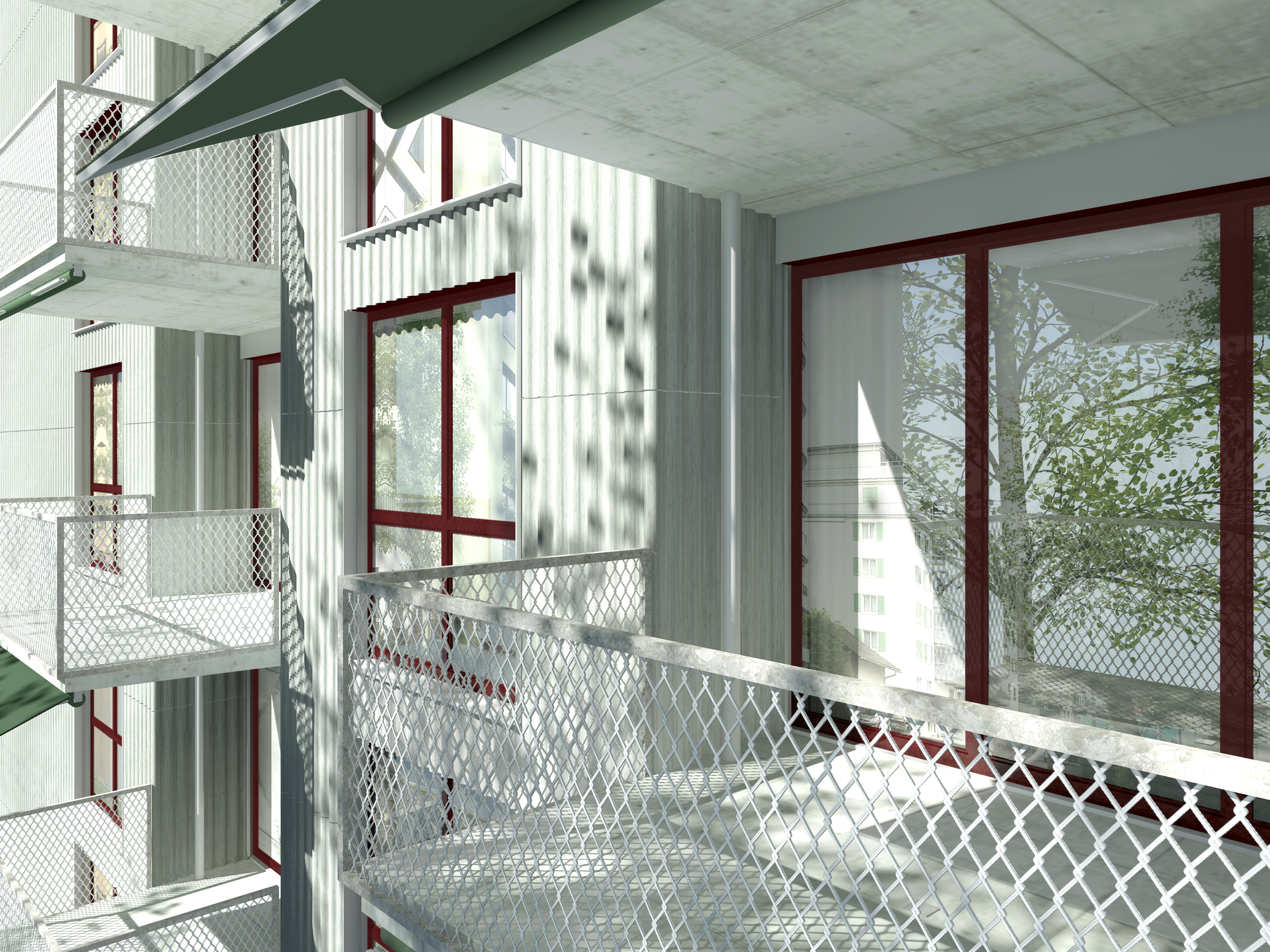 Zu den wichtigsten, in ihrer Grösse und Intaktheit einzigartigen Teilen der Stadt Luzern des späten 19. und beginnenden 20. Jahrhunderts gehören das Bahnhof-und das Hirschmattquartier. Direkt am Geleisebogen gelegen, befindet sich das Areal des ehemaligen Galvanikbetriebs Blaser an der Neustadtstrasse 24. Der Geist des Ortes ist vielschichtig und wird geprägt durch die Nähe zur Bahnlinie, die ehemalige industrielle Nutzung, die Art und Weise der Neubauten im Süden und die Bauten aus den 60’er Jahren im Südwesten. Die Setzung des neuen Gebäudes wird primär durch die verschiedenen Baubegrenzungslinien bestimmt. Mit einzelnen, spezifischen Grundformanpassungen versucht sich der projektierte Baukörper aus den Fesseln der baurechtlichen Vorgaben zu lösen. Ein eigenständiges, kraftvolles Bauvolumen wird entwickelt. Das sechsgeschossige Appartementhaus verfügt über ein Attikageschoss, ein Sockelgeschoss und partiell über ein Untergeschoss. Zwei Erschliessungskerne bedienen die gesamthaft 43 Wohnungen. Das Herzstück des zentralen Appartementhauses ist die gemeinsame Eingangshalle. Dieser grosszügige Ort mit räumlichen und gemeinschaftlichen Qualitäten empfängt die Bewohner und Besucher an einer Schnittstelle des Quartiers, verbindet die zwei Treppenhäuser und den Veloraum miteinander und fördert die Nachbarschaft. Die wesentlichen Merkmale der äusseren Erscheinung bilden die autarke Formensprache, die klare Struktur und die Wertigkeit der eingesetzten Materialien, Oberflächen und Farben. Das Bild der gebauten Umgebung wird geprägt von pragmatischen, einfach strukturierten Lochfassaden. Dieser übergeordneten Erscheinung und der inneren Struktur entsprechend ist auch der Neubau gestaltet. Die Fassade trägt die Idee des städtischen Appartementhauses hinaus ins Quartier und erinnert an das industrielle Erbe des Ortes .