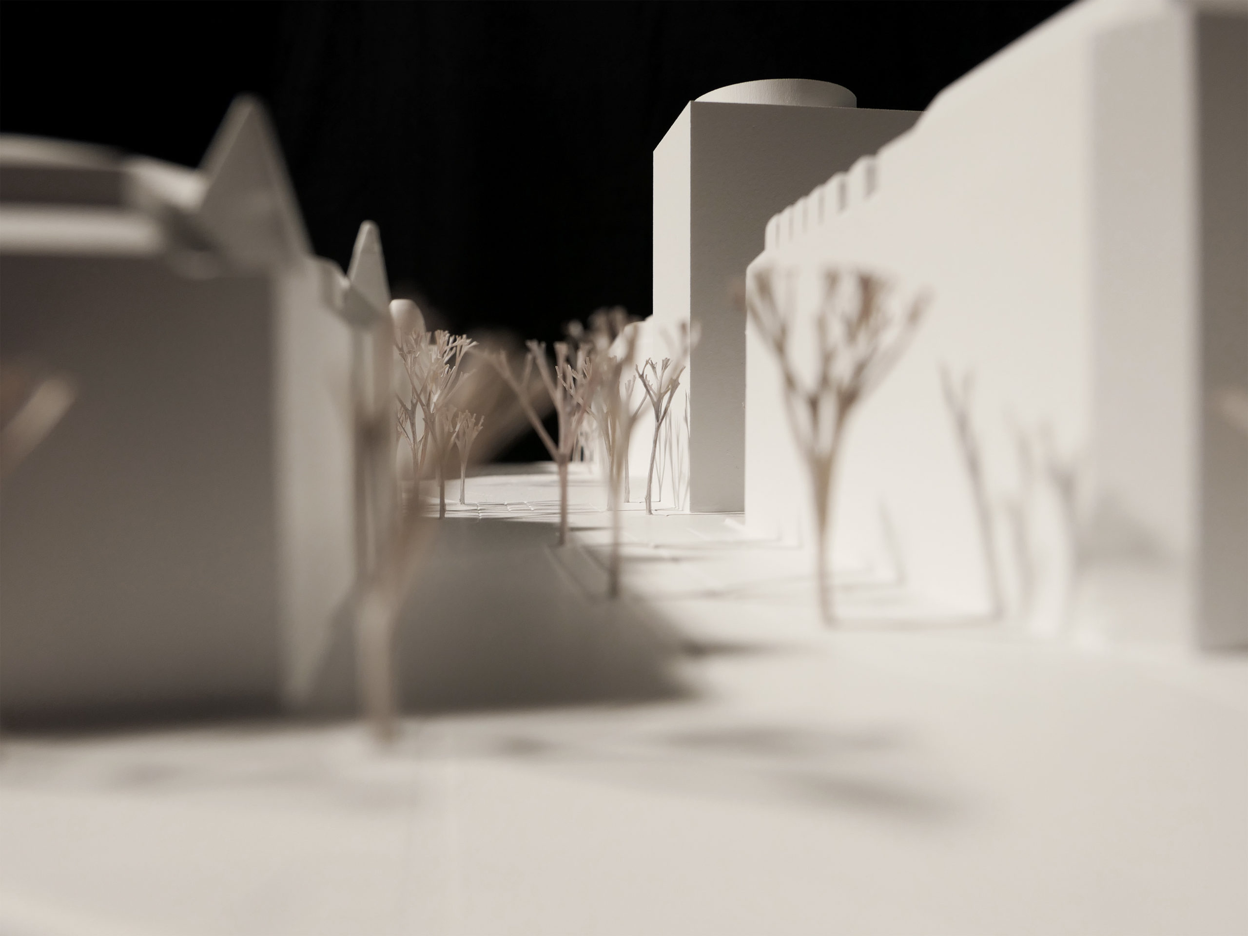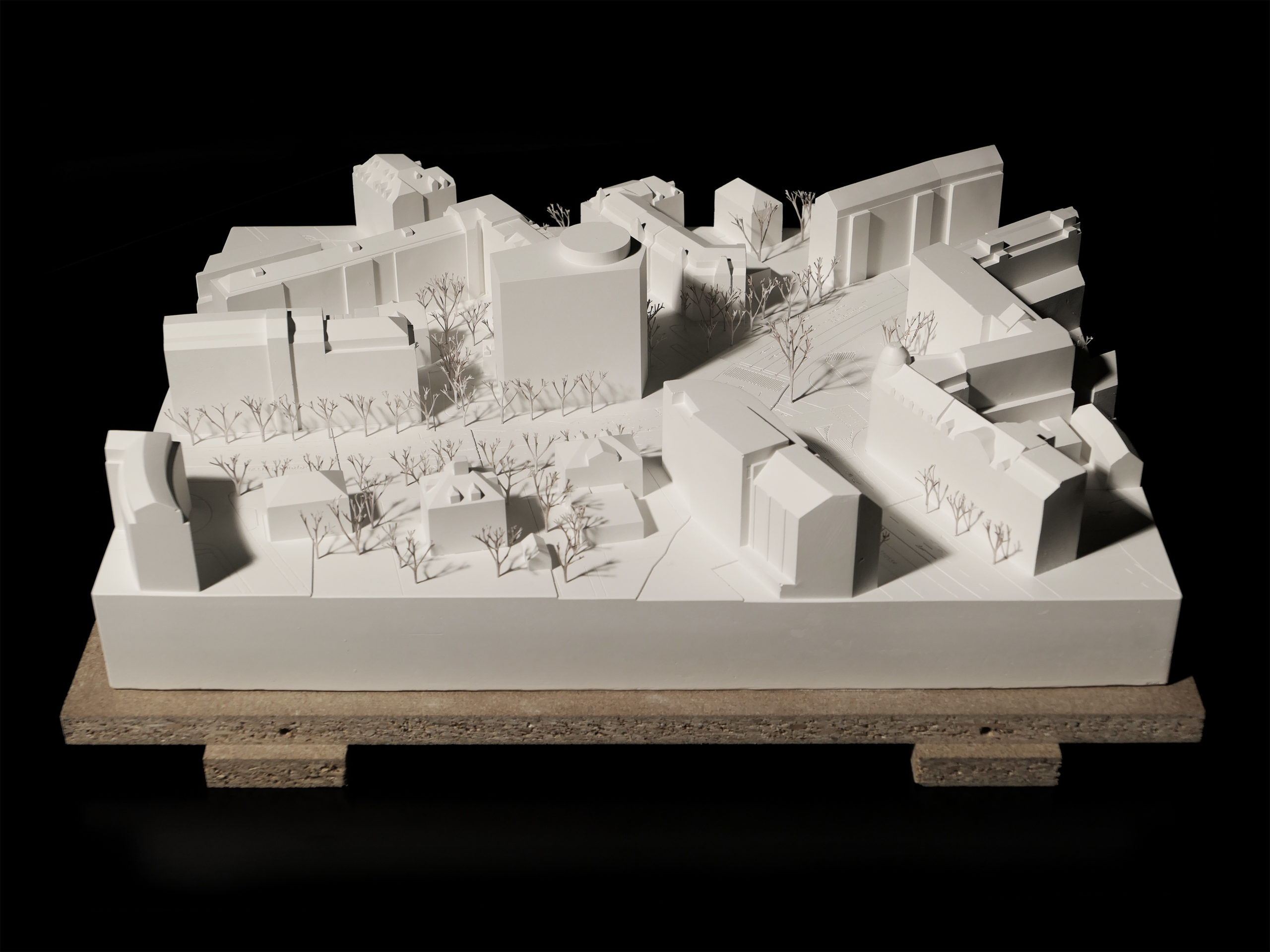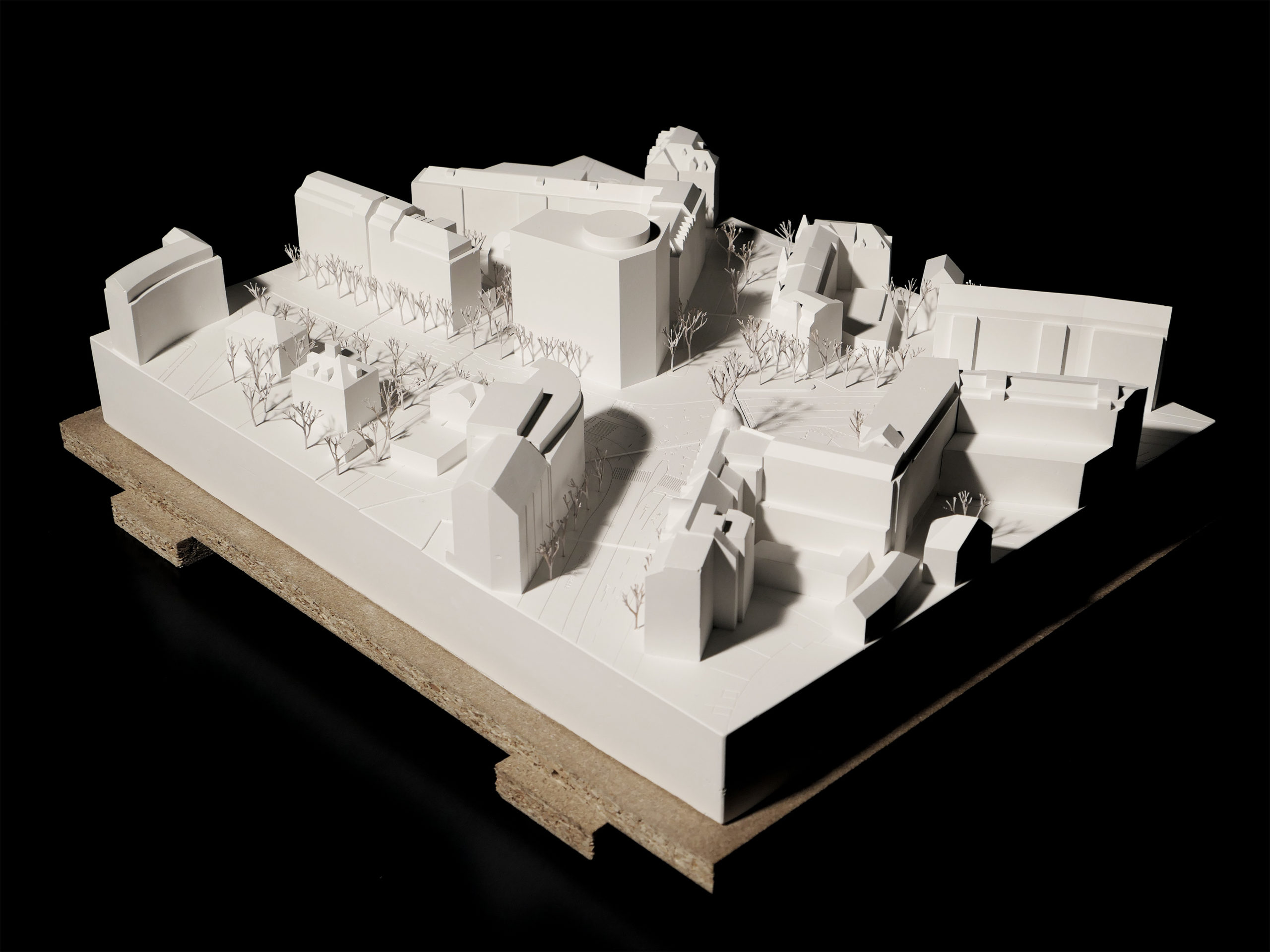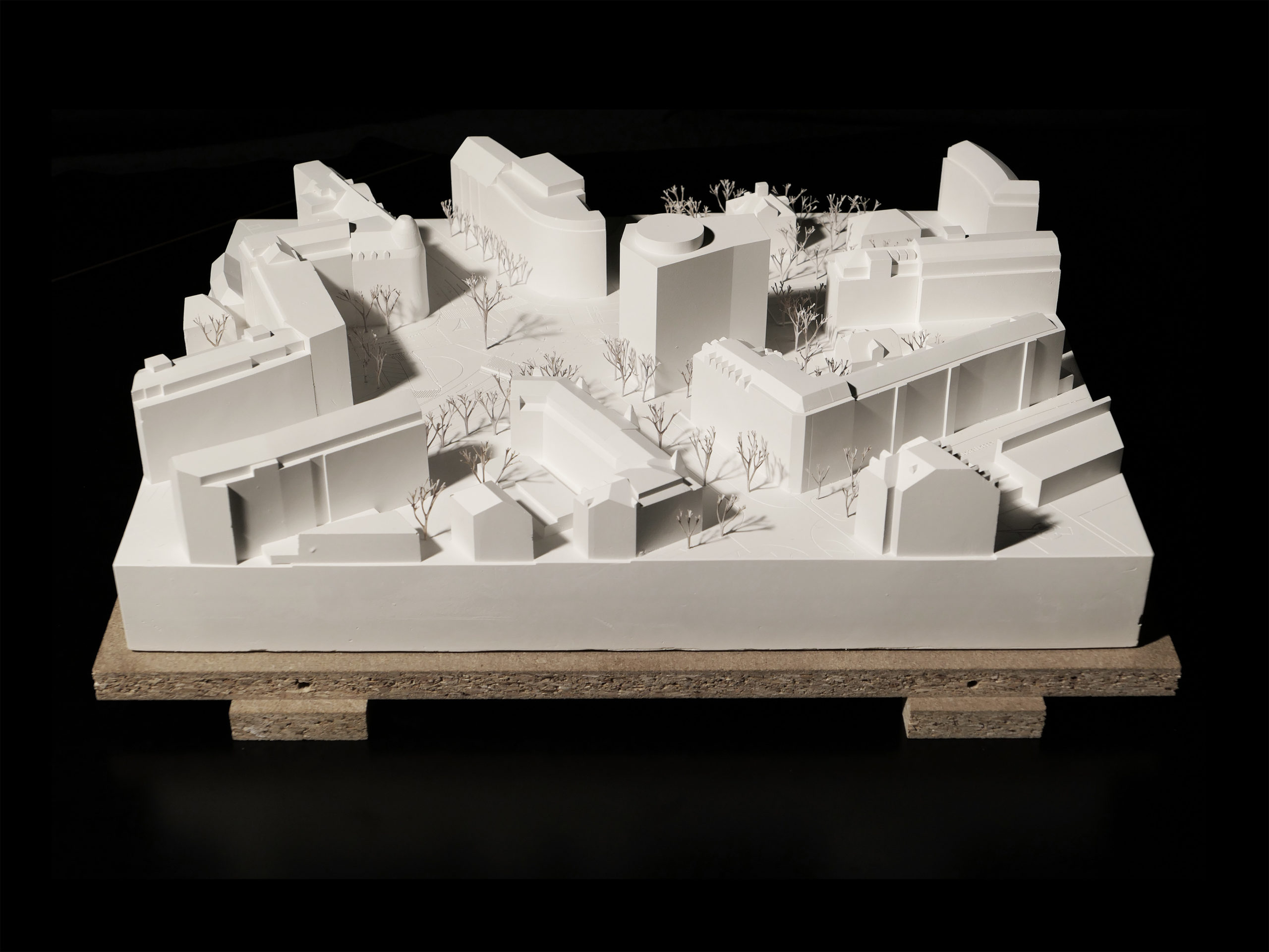 Mitten im Herzen der Stadt Luzern soll der geschichtsträchtige Ort am Pilatusplatz mit einem Wohn-und Geschäftshaus bebaut werden. Das Grundstück bildet die Schnittstelle von unterschiedlichen Stadträumen und spielt eine wichtige Rolle für die Gliederung dieser. Das Quartier ist im frühen 20. Jahrhundert entstanden, schachbrettartig aufgebaut und bestehend aus mehrgeschossigen Häuserzeilen. Die sechsgeschossigen Mietwohnungsblöcke der nahen Umgebung, mit ihren differenzierten auskragenden Balkonen, ihren Sockelgeschossen und steilen Mansardendächern, belegen den Internationalismus der Fremdenstadt. Mit grosszügigen Abständen zu den beiden angrenzenden Kopfbauten, fügt sich der Entwurf respektvoll entlang der Obergrundstrasse und der Pilatusstrasse ein. Das polygonale einfach geschnittene Volumen sucht die Analogie zu den klassischen ortsüblichen Geschäfts-und Wohnhäuser und versteht sich als Schlussstein des Gevierts. Mit 35 Meter Gebäudehöhe ragt der Neubau über die teppichartige Stadtlandschaft hinaus und verweist auf die wichtige Lage innerhalb der Neustadt. Die schlanke Hauptfassade, welche sich direkt zum Platz orientiert, gibt dem Ort eine neue unverwechselbare Identität. Der leichte Knick des Bauvolumens auf der Innenhofseite schafft einen Bezug zur Massstäblichkeit der Innenhofbauten und reagiert auf das nah stehende Riegelhaus. Der Abschluss des Gebäudes bildet das kreisförmige, ungerichtete Panoramageschoss im nördlichen Bereich des Baus. Ein klassischer und doch zeitgemässer Ausdruck prägt die Erscheinung des Entwurfs. Der wohlproportionierte, in allen Geschossen durchlaufende Raster ist dem Tragwerk in Holz geschuldet und strukturiert die Fassadeneinteilung. Ein massiver Sockel in Beton bildet die robuste Basis des Gebäudes. Die grosszügige Verglasung öffnet das Gebäude für die Öffentlichkeit und lässt den Pilatusplatz mit den Nutzungen des Erdgeschosses wie Restaurant und Läden miteinander verschmelzen.