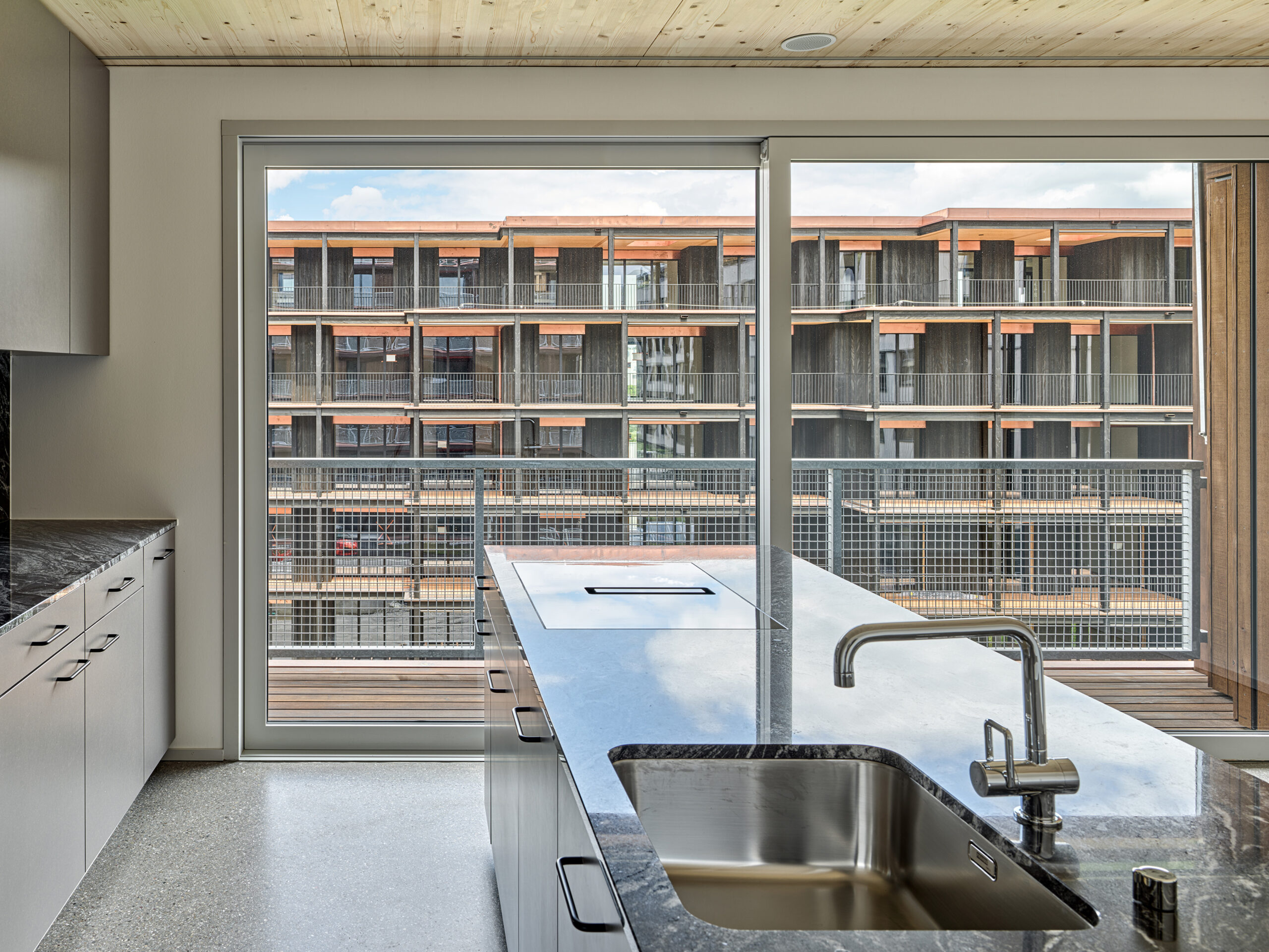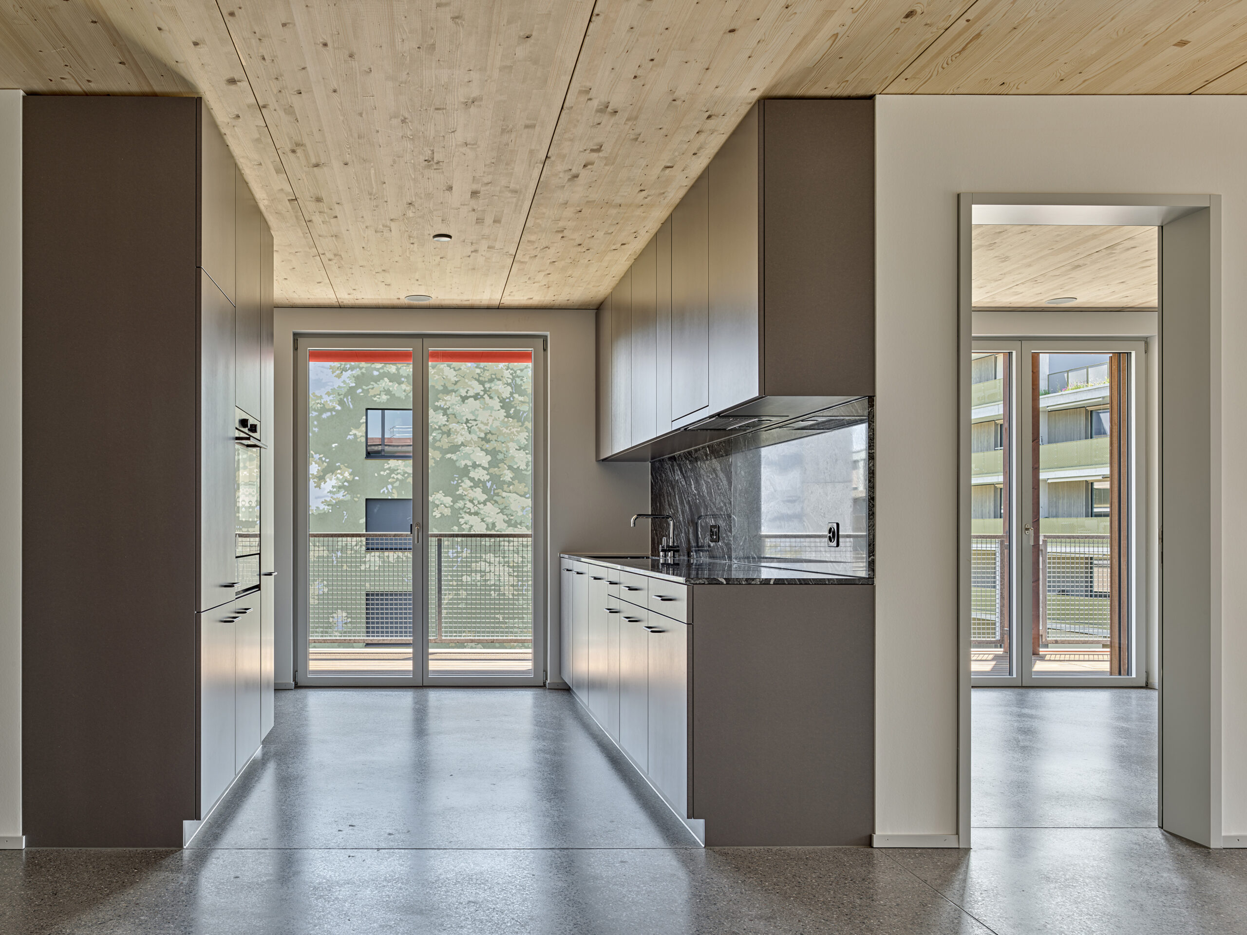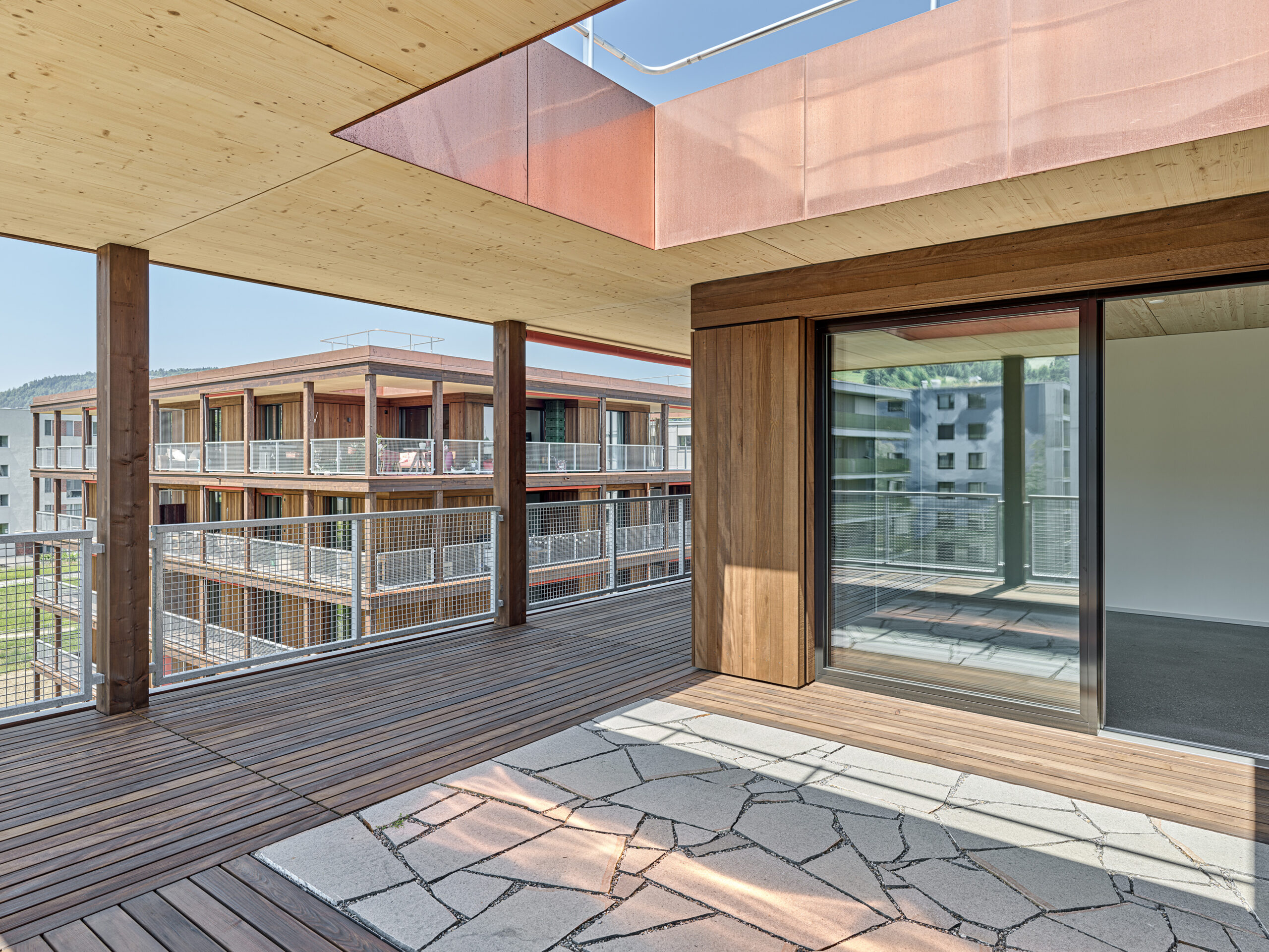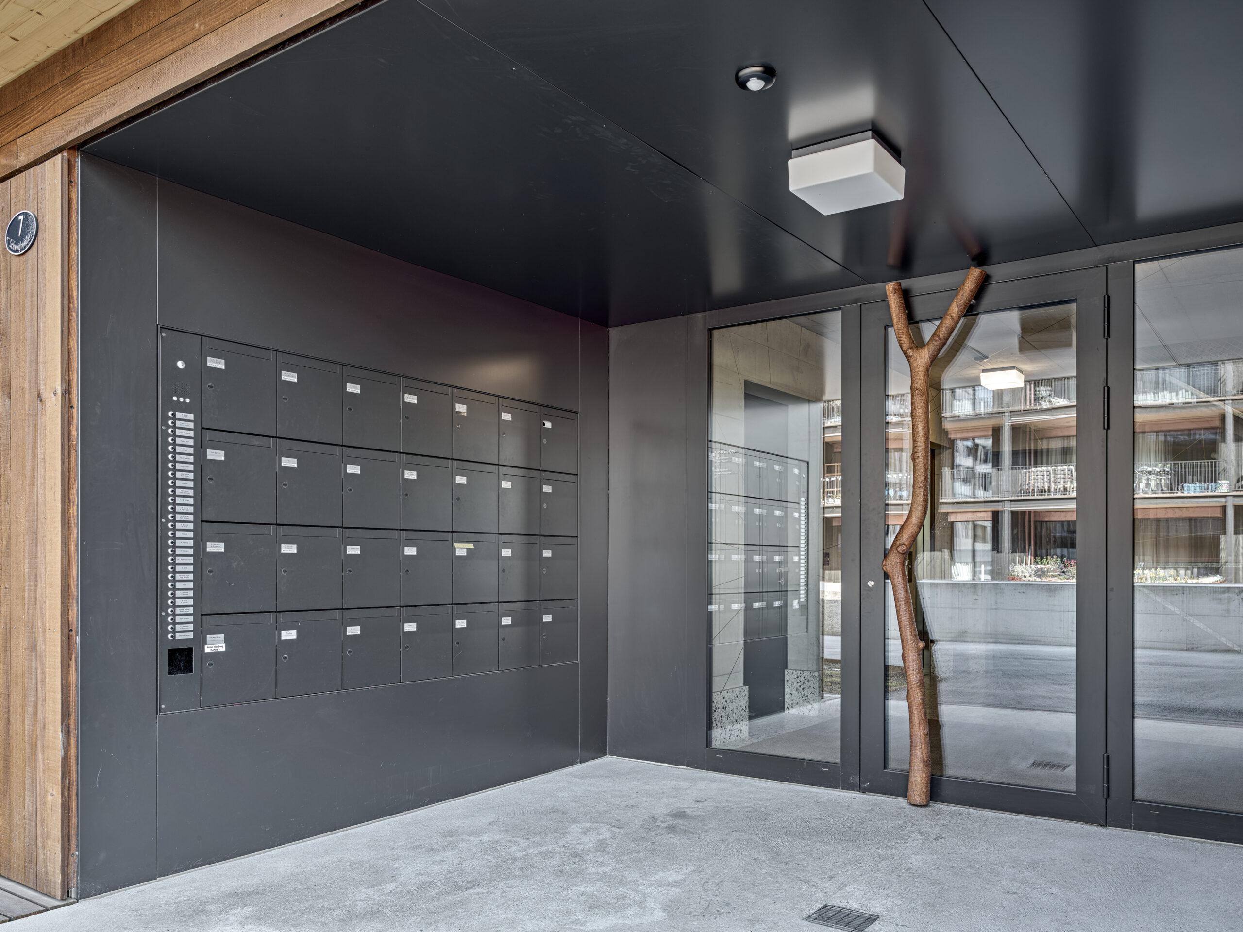 Im Süden Luzerns wächst ein neuer gemeindeübergreifender Lebensraum heran. Eingebettet zwischen Pilatus, Sonnenberg und Vierwaldstättersee bietet Luzern Süd hohe Lebensqualität und ein vielfältiges Angebot. Zwischen Kriens, Horw und Luzern entstehen sechs urbane Gebiete. Eines dieser Gebiete ist das Schweighofareal. Die drei Baufelder der Stiftung St. Anna liegen im Zentrum der Anlage und reagieren mit einem allseitig offenen Charakter auf die spezifische Lage innerhalb der Siedlung. Die versetze, richtungslose Anordnung lässt die einzelnen Bauten von allseitig qualitativen Räumen profitieren und offene Ecken fördern die Quertransparenz innerhalb der Siedlung. Die strukturelle Vierteilung der Grundrissflächen erfolgt mit dem zentralen Treppenhaus, jeweils einem, beziehungsweise zwei Zimmern an den Fassaden und den dazwischenliegenden Nebenräumen. Die so gewonnenen vier Hauptwohnräume sind jeweils an den Gebäudeecken disponiert. Den Räumen vorgelagert bildet die signifikante Verandenschicht das Herzstück der Wohnungen. Jedes Zimmer verfügt über einen Zugang zum vorgelagerten Aussensitzplatz womit die Vielfalt der internen Wegführung erheblich gesteigert wird. Mit der umlaufenden Terrassenschicht wird neben einem hervorragenden Schutz der Fassade auch ein Filter geschaffen, der die Nähe der Bauten legitimiert und der Privatheit und Autonomie der Einheiten dient. Die Bauten der St. Anna Stiftung treten als massgeschneiderte Holzbauten in Erscheinung. Die der übergeordneten Idee des hohen Wohnwertes verpflichteten Veranden sind den Volumen vorgesetzt und verkleiden diese mit horizontalen Balkonstirnen und filigranen Stützen. Von den Veranden zurückversetzt bilden stehende Fassadenteile aus Holz und hochgestellten Türen und Fenster eine zurückhaltende, funktionale Gebäudehülle.